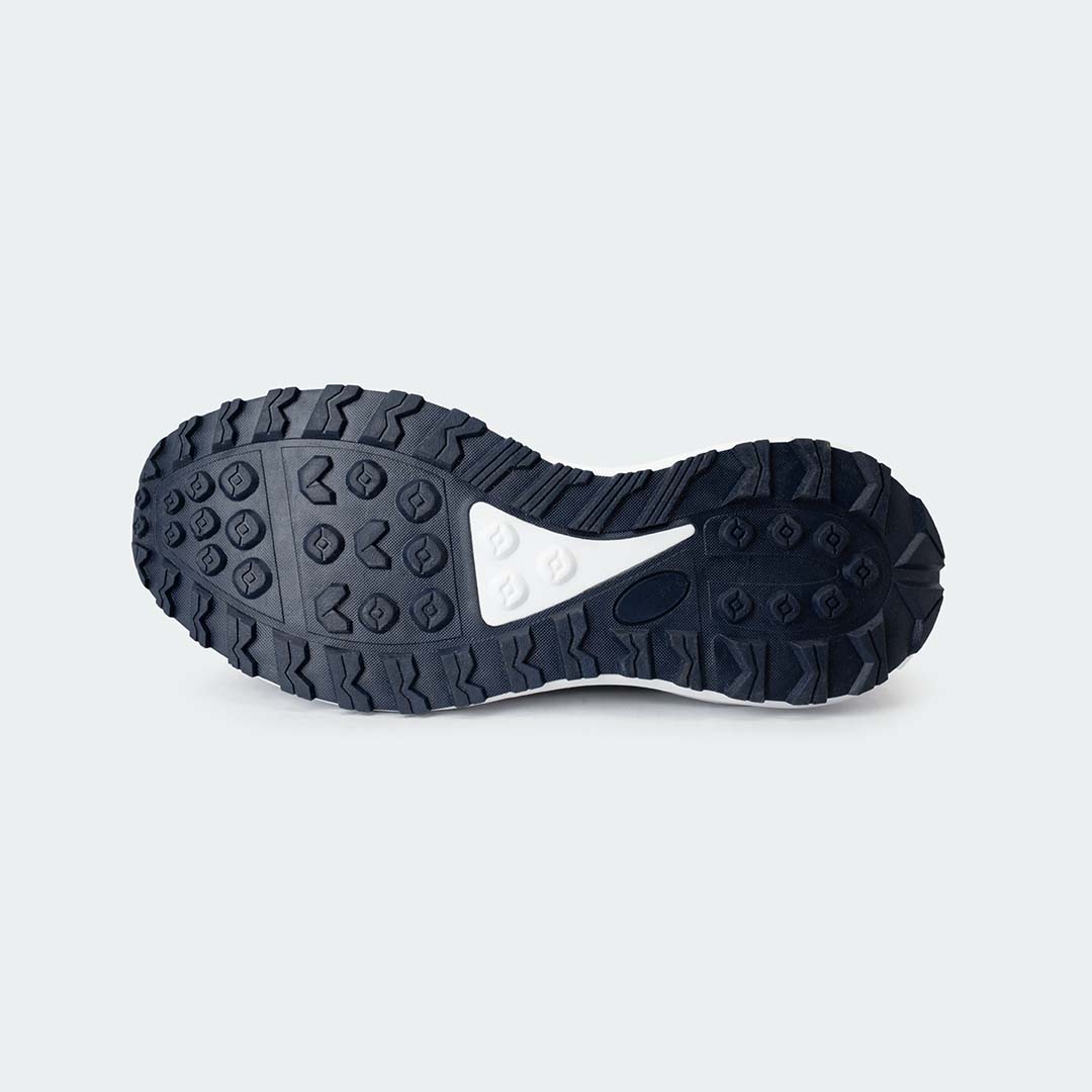 The MOTION-X 758 features a breathable mesh upper that enhances airflow while maintaining a supportive, adaptive fit. Its deep navy base is elevated by bold metallic accents along the side panels, creating a confident and athletic look. Structured overlays reinforce key areas for durability, while the sculpted white midsole adds a clean contrast that sharpens the overall silhouette.